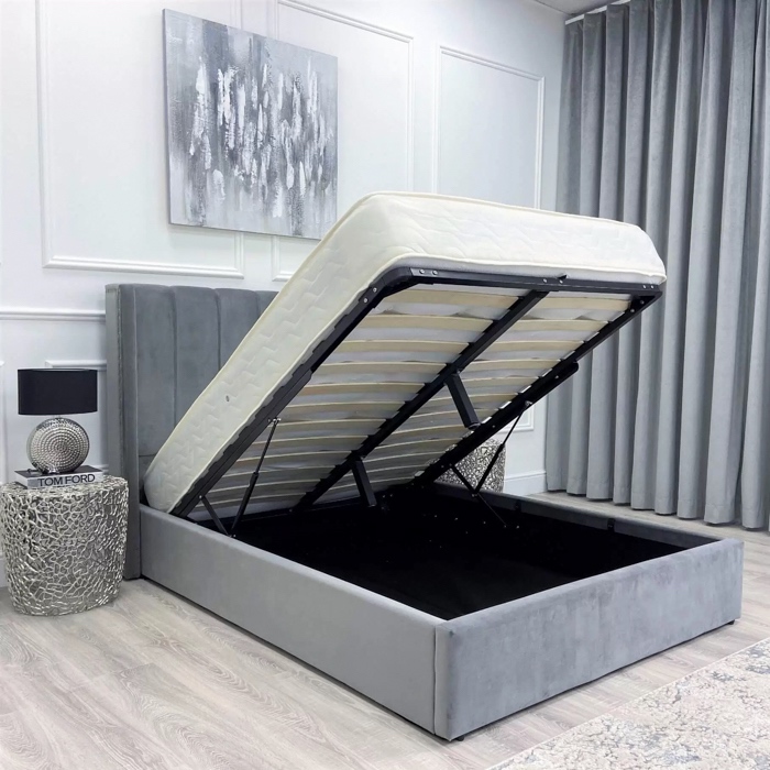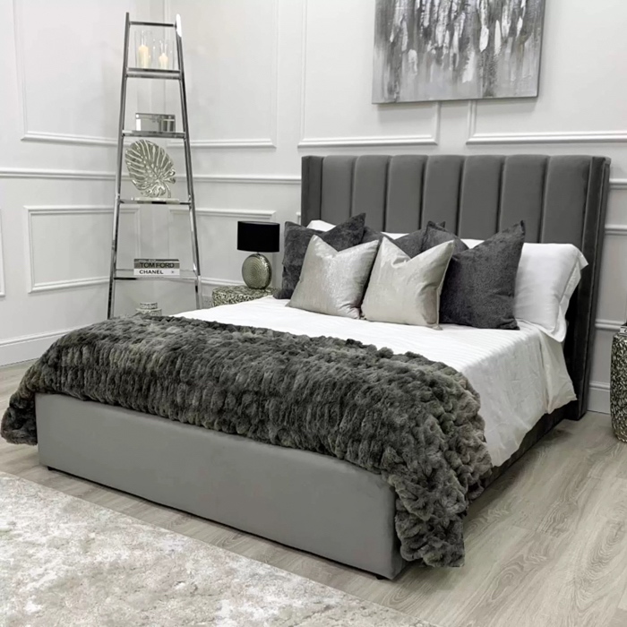 Pat dormitor tapitat gri deschis, tablie moderna de 130 cm inaltime, structura lemn si PAL melaminat, picioare negre PVC, dimensiune totala de 220 x 195 cm pentru saltea de 180 x 200 cm. Somiera este fixa, suportul pentru saltea fiind drept, din PAL nemelaminat, sustinut de un sistem tip fagure, foarte rezistent Creand adevarata magie prin conturul si culorea dedicate zonei de noapte, patul LOTUS se caracterizeaza prin maiestrie si atentie maxima acordata la fiecare detali