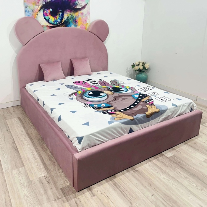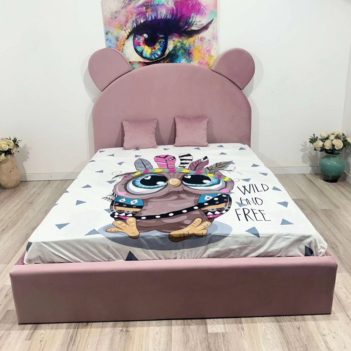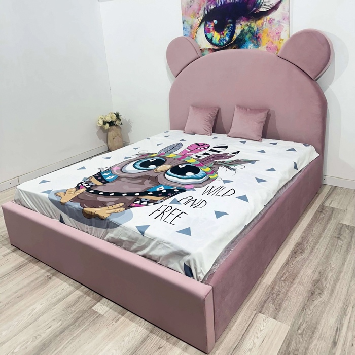 Pat Minnie tapitat cu catifea moale la atingere, pentru saltea de 160 x 200 cm, somiera rabatabila, loc de depozitare spatios, dimensiune totala de 175 x 220 cm, urechi detasabile, structura rezistenta din lem si PAL. Patul Minnie – vise dulci intr-un decor de poveste. Intr-un dormitor de poveste, patul tapitat Minnie devine piesa centrala care aduce un strop de magie. Tapitat cu un material catifelat in nuanta delicata de roz prafuit, acest pat este perfect pentru a crea u
