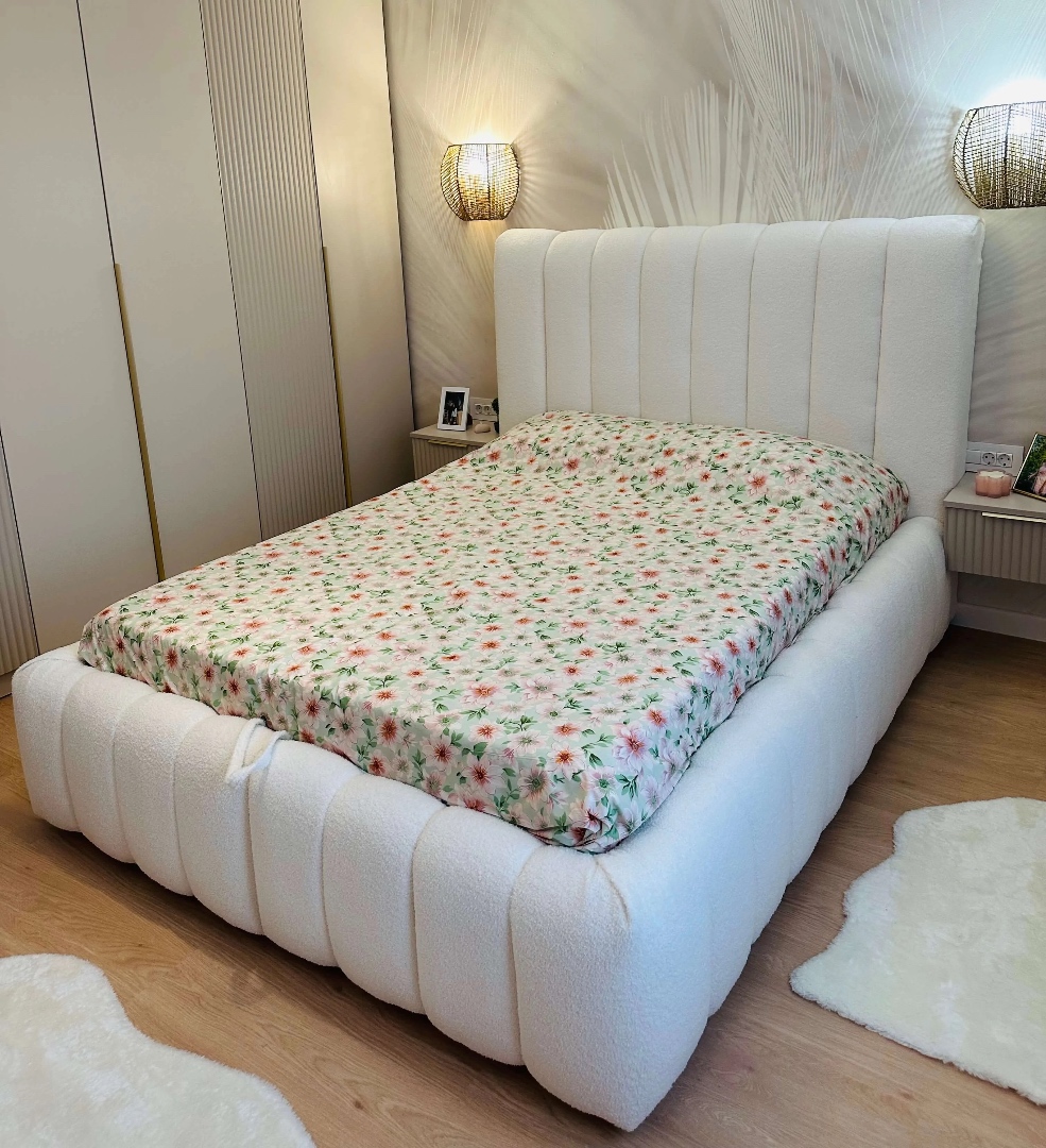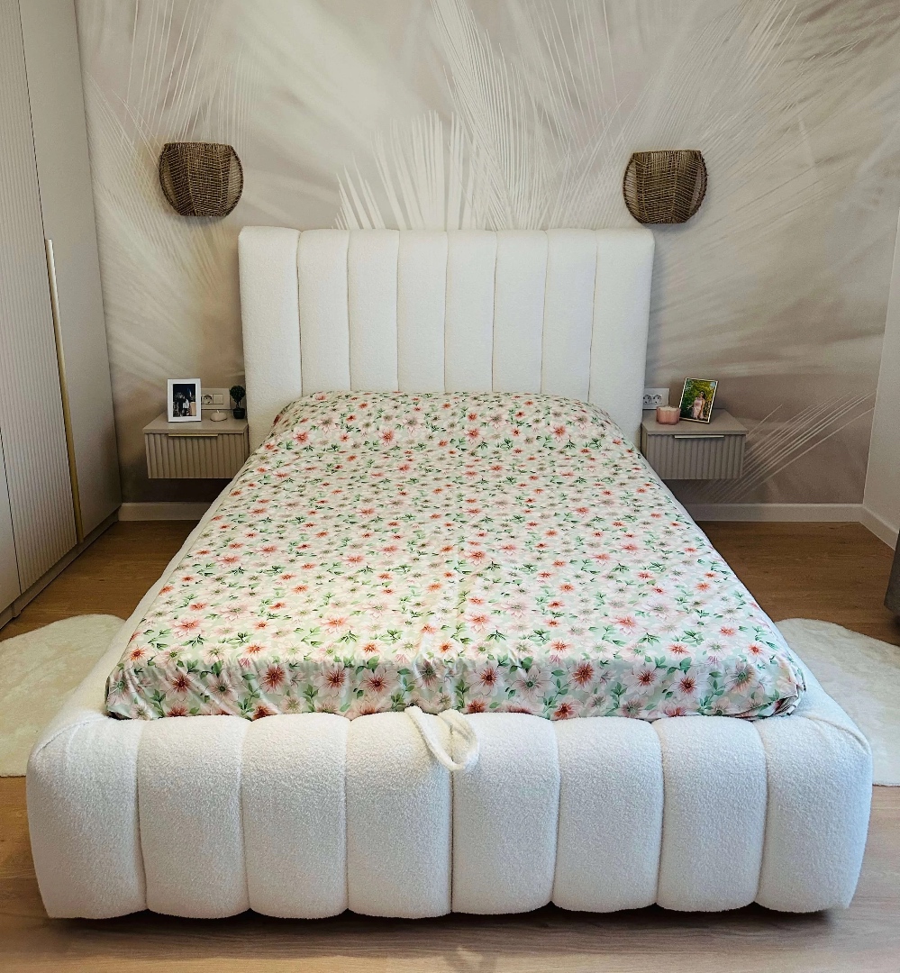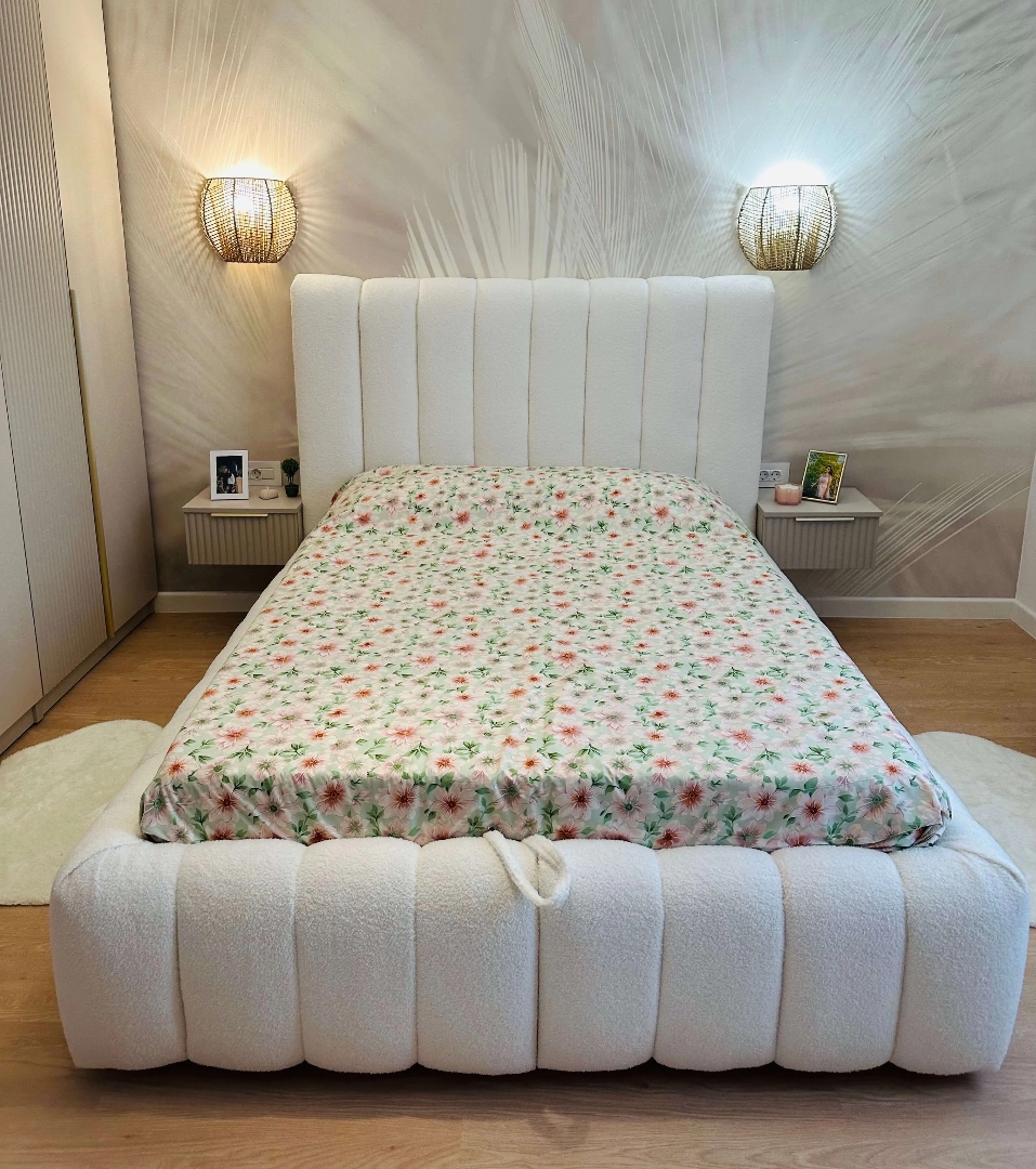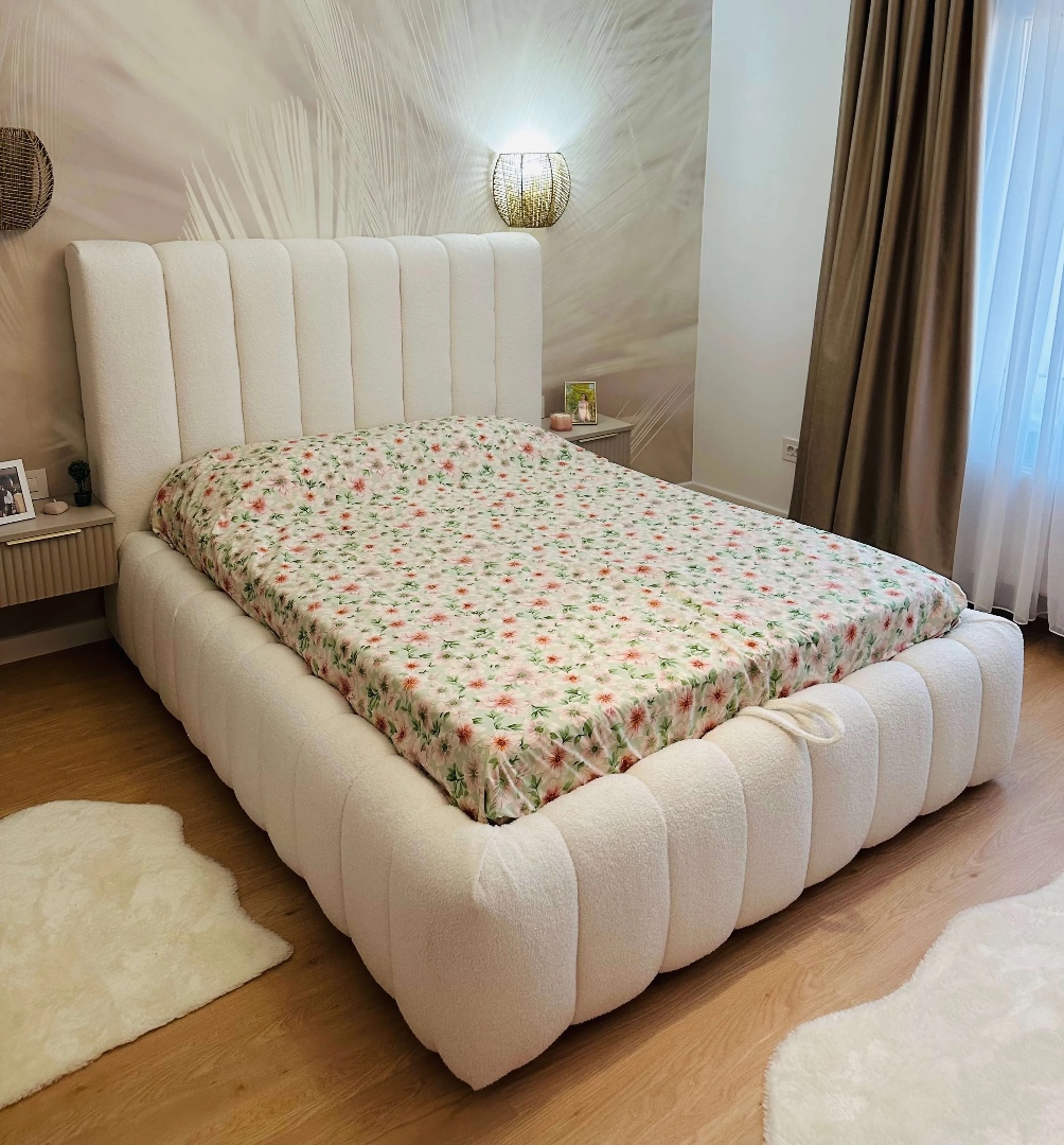 Pat tapitat design deosebit cu dimensiuni totale de 225 x 165 cm, pentru saltea de 140 x 190 cm, stofa buclata, tablie tapitata inalta 120 cm, somiera metalica rabatabila cu acces usor la lada de depozitare, constructie solida din lemn si PAL. Descopera eleganta si confortul absolut cu patul tapitat model Phoenix in nuanta de alb, un adevarat simbol al rafinamentului si al functionalitatii. Creat pentru a aduce un aer sofisticat dormitorului tau, acest pat combina armonios designul