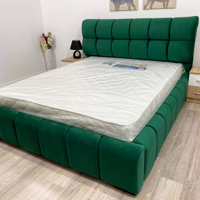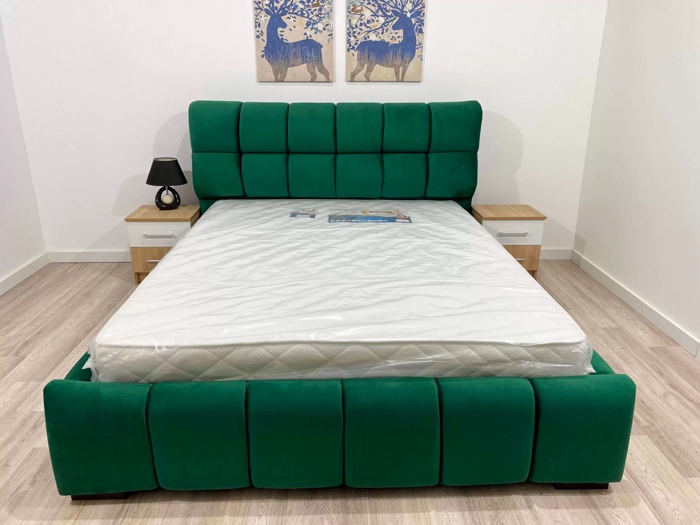 Pat Tapitat, pentru Saltea de 140x200cm, Material Buclat, Verde - model ENZO - cu Somiera Fixa
