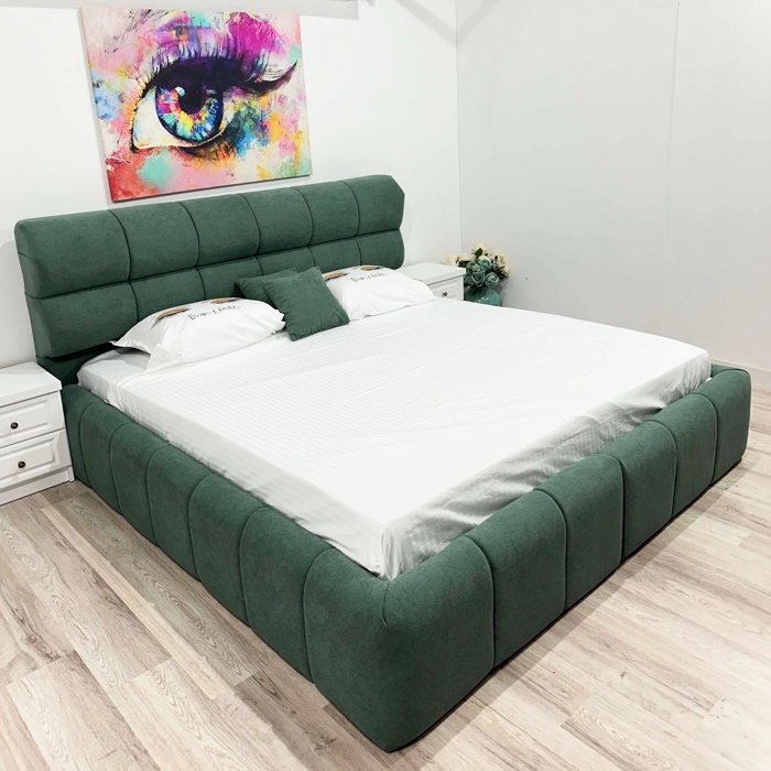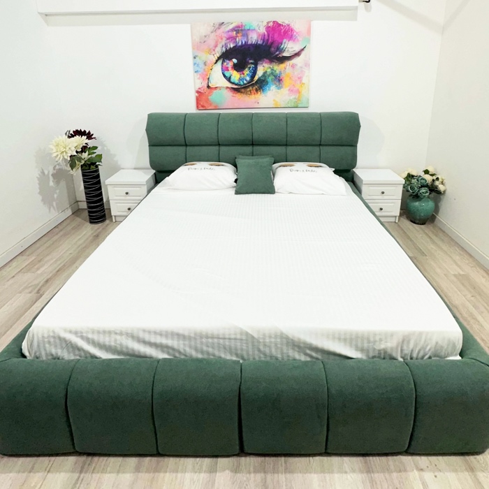 Pat modern elegant, tapitat cu material plusat de calitate superioara, somiera rabatabila cu lada pentru depozitare, structura rezistenta din PAL melaminat si lemn. La comanda se poate realiza si fara somiera, suportul pentru saltea fiind drept, din PAL nemelaminat, sustinut de un sistem tip fagure, foarte rezistent. Patul tapitat ENZO este o alegere excelenta pentru cei care doresc sa adauge rafinament si eleganta dormitorului lor. Designul sau original impresioneaza imedi