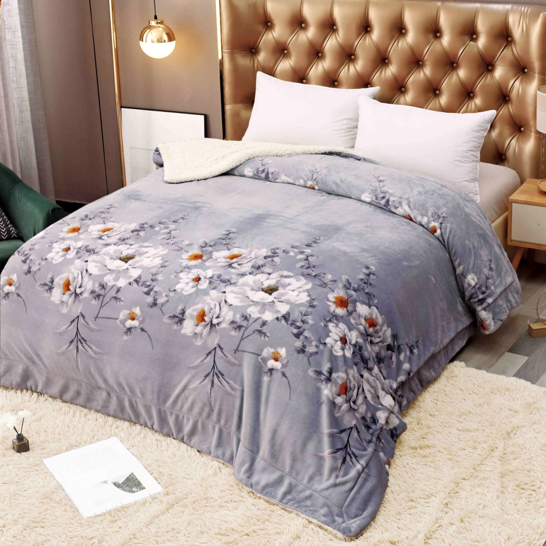 Patura CoCoLiNo cu blanita, 200x230cm, Jojo Home, Gri, flori
