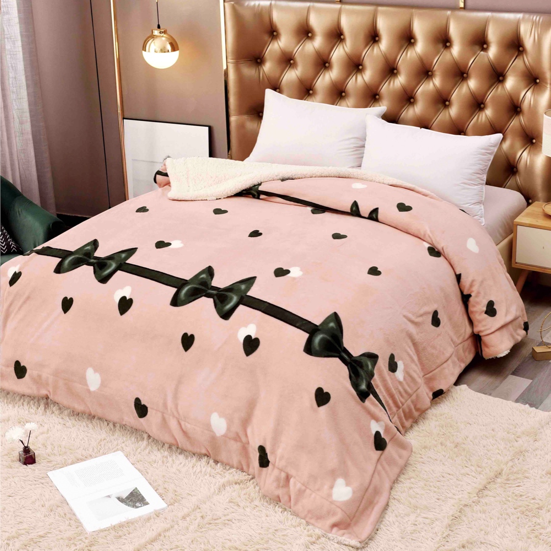 Patura CoCoLiNo cu blanita, 200x230cm, Jojo Home, Roz pudra, inimioare, fundite