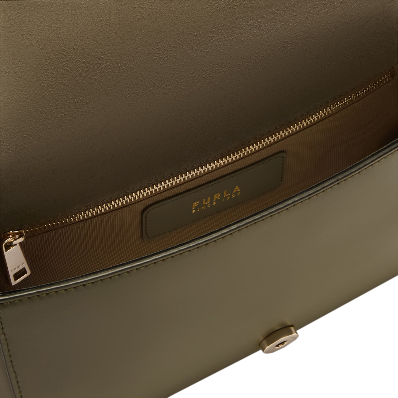 Furla spune povestea unui vis. Încă din 1927 Furla creează genți, portofele, pantofi și mici accesorii din piele atât pentru femei, cât și pentru bărbați. Stilul italian este întipărit în ADN-ul companiei și se regăsește în fiecare detaliu de la materiale la culori. Geanta Riva crossbody se remarcă prin designul său structurat și forma rigidă, fiind realizată din piele fină cu un efect de blocare a culorilor, ce creează un model pe trei dimensiuni, în dungi. Cureaua de umăr reglabilă permite purtarea sa atât pe umăr, cât și crossbody, oferind astfel versatilitate pentru diferite ocazii și stiluri.