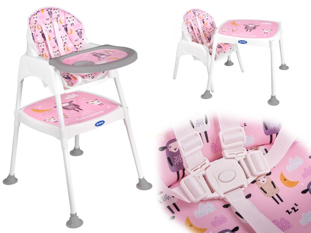 SCAUN DE HRANIRE SCAUN 3IN1 ROZ Fiecare masa va deveni incomparabil mai confortabila cu acest scaun de hranire! Designul dragut si unic nu numai ca va atrage atentia micutului dumneavoastra, dar va conferi si sufrageriei o atmosfera interesanta si luminoasa. Distanta mare dintre picioarele scaunului asigura o stabilitate exceptionala, chiar daca micutul dumneavoastra este foarte mobil, nu va trebui sa va faceti griji ca se clatina sau se rastoarna! Ingrijirea curateniei nu va fi o prob
