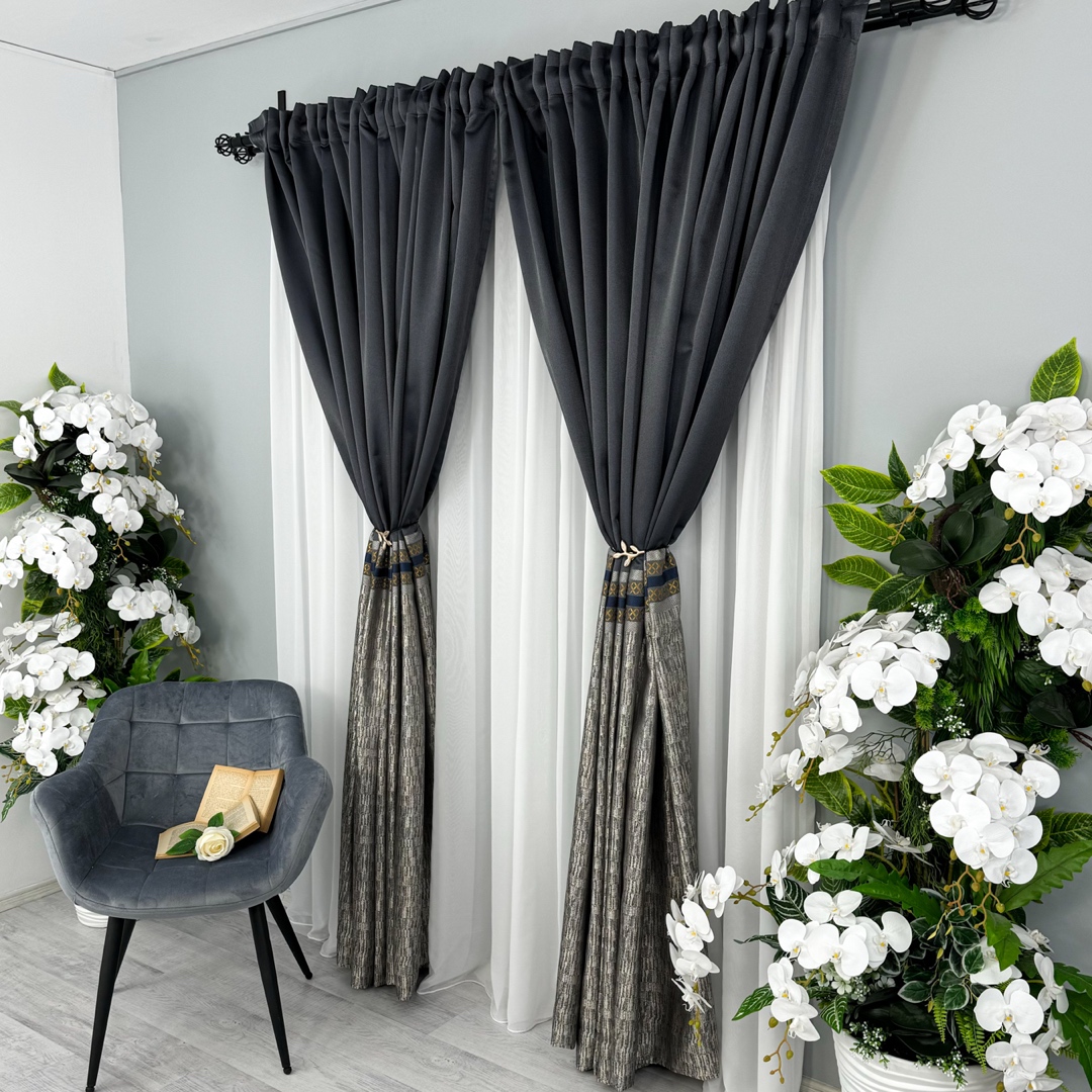 Set 2 Draperii Simplicity, tip panou 300cm latime x 232cm inaltime, rejansa pt. bara , Antracit cu Bej