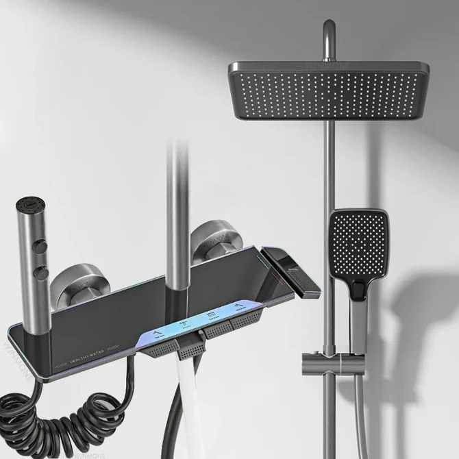 Transforma-ti baia intr-un spa modern cu acest set de dus termostatic inteligent, echipat cu LED-uri si afisaj digital pentru o experienta de neegalat. Setul este proiectat pentru a combina functionalitatea avansata cu un design sofisticat, fiind ideal pentru orice tip de amenajare. Caracteristici principale: Mixer termostatic: Permite reglarea rapida si precisa a temperaturii apei pentru confort maxim. Dus manual ergonomic: Flexibil si usor de utilizat, ideal pentru o curatare rapi