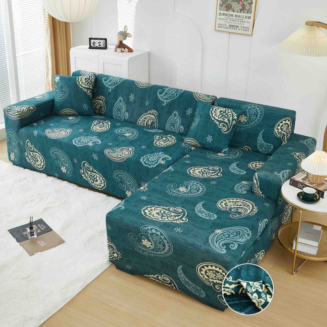 Set husa pentru coltar M + L, Elastica, Jojo Home, Turquoise, Model Tribal