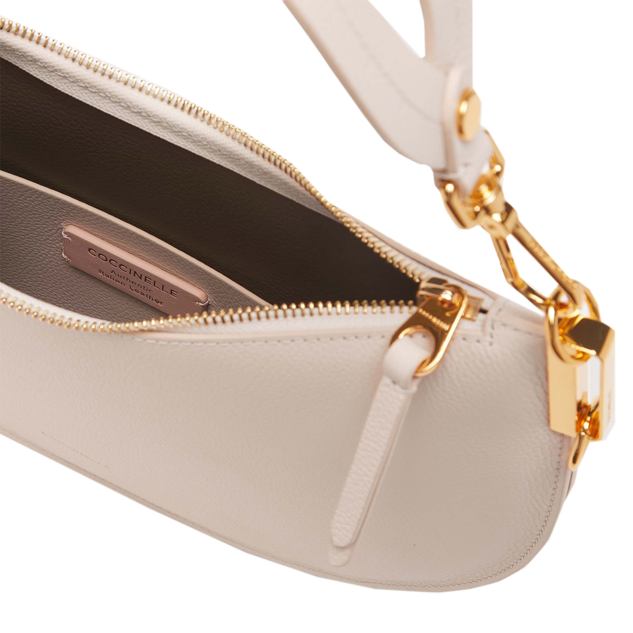 Coccinelle este un brand italienesc, originar din Parma, ce creează accesorii pentru viața de zi cu zi a femeilor din întreaga lume. Brandul are un stil contemporan și se mândrește cu produse calitative, lucrate cu cea mai mare atenție la detalii. Produsele Coccinelle reflectă femeia modernă și îi permite acesteia să își scoată în evidență stilul și individualitatea. Coccinelle Sunup atrage toate privirile prin designul său rotunjit și elegant, cu linii feminine și fluide. Acest model se remarcă prin mânerul său distinctiv, care adaugă o notă de originalitate și fluiditate aspectului general. Realizată din piele de înaltă calitate, cu o finisare pe două fețe, geanta oferă un joc interesant de contraste cromatice, accentuând astfel finețea și ușurința în utilizare. Designul său rafinat și măiestria de excepție o transformă într-un accesoriu remarcabil pentru orice garderobă sofisticată.
