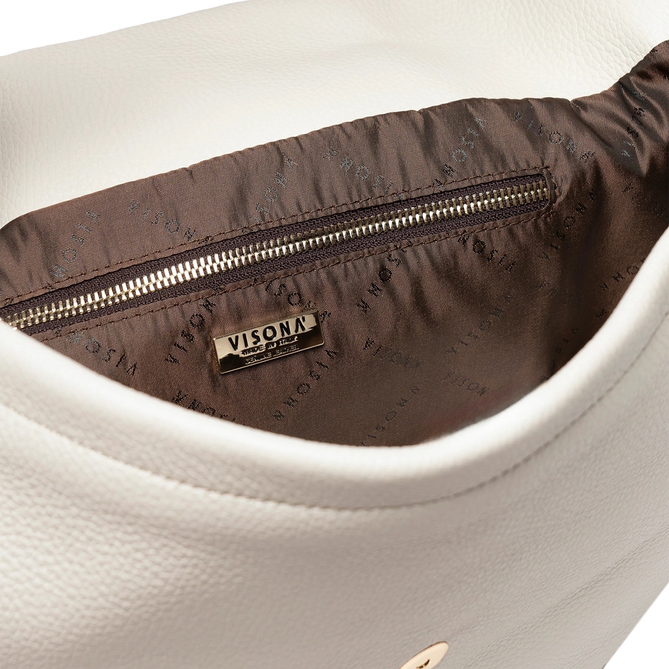 Brand-ul Visona reflectă echilibrul dintre inovație și autenticitate, oferind accesorii care nu doar completează ținuta, ci spun o poveste despre stil și rafinament. Geanta Tracy – Un accesoriu perfect pentru a adăuga un plus de eleganță și stil ținutelor tale zilnice. Cu un mâner împletit ce adaugă un element de unicitate și rafinament, această geantă poate fi purtată în mână sau pe umăr, oferindu-ți versatilitate în purtare. Fabricată 100% în Italia, este un simbol al tradiției și calității italiene, iar materialul din piele de vițel cu granulație naturală asigură un aspect deosebit și o durabilitate ridicată.