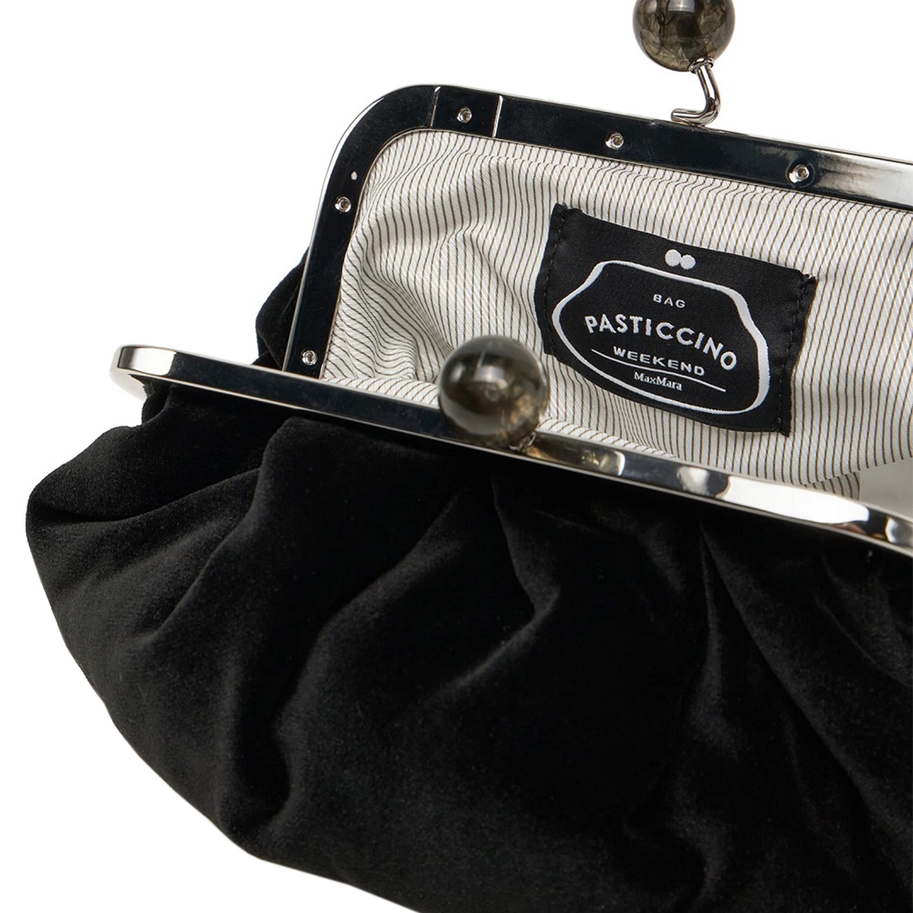 Weekend Max Mara, simbol al stilului italian și linie contemporană a brand-ului de lux Max Mara, a fost creat special pentru a oferi femeii dinamice piese vestimentare rafinate, cu un look relaxat, pentru ținutele de zi cu zi. Geanta Vespa este un clutch elegant care adaugă un plus de rafinament și unicitate oricărei ținute de zi cu zi, fiind confecționată din catifea fină și delicată. Curea lungă detașabilă din lanț, cu detaliu din piele, îți permite să o porți atât crossbody, cât și manual, oferindu-ți o opțiune versatilă și la modă. Clapa iconică de tip clutch, cu închizătoare kiss lock din rășină mată, este înfrumusețată cu un logo gravat în formă de fluture și literele Weekend Max Mara, aducând o notă subtilă de sofisticare.