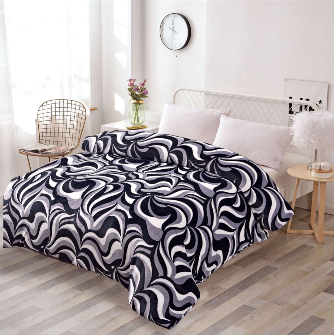 Patura pufoasa cocolino 200x230cm, 240g/mp, Gri-Negru, abstract