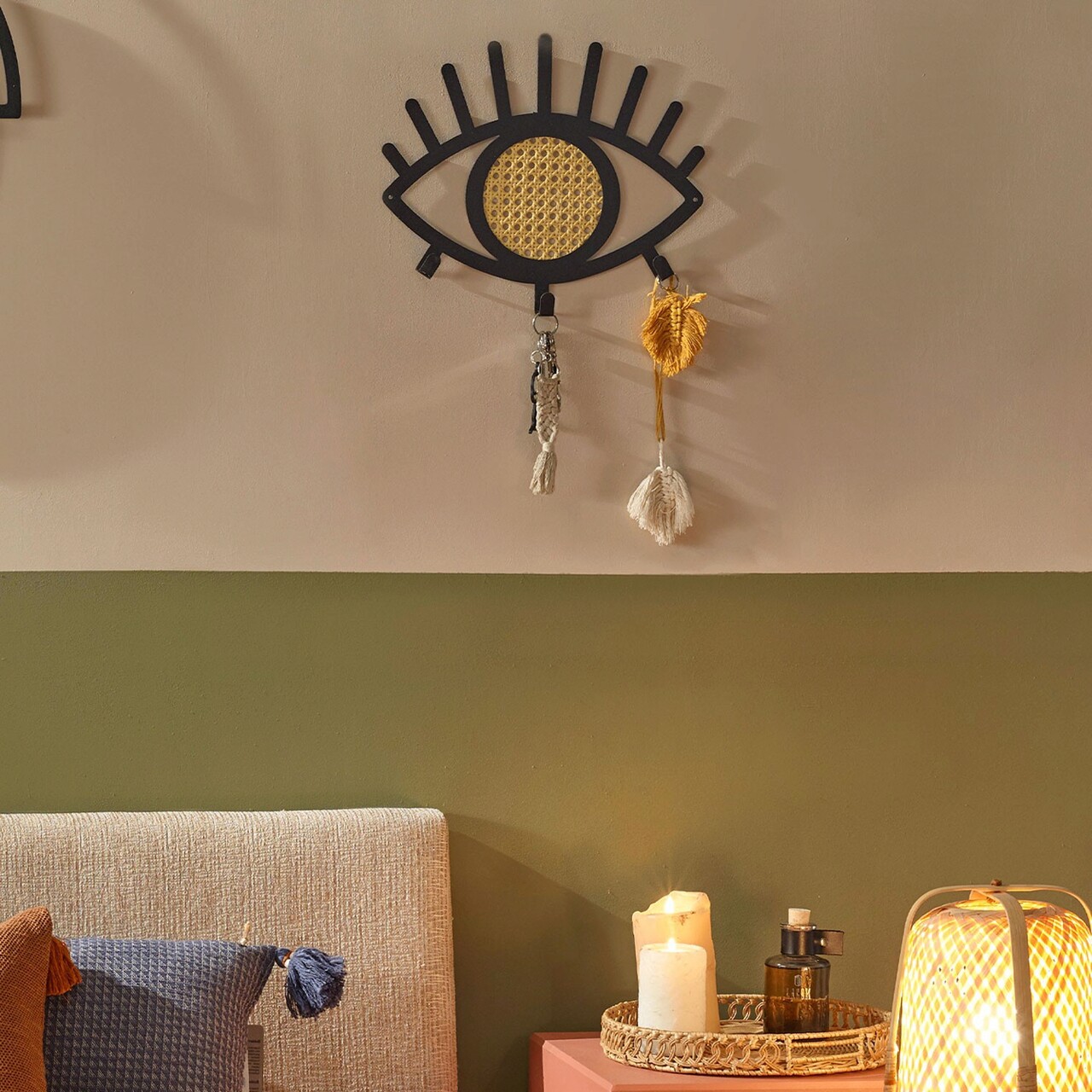 Cuier de perete, Rattan Eyes Metal Wall Hanger, 35x30 cm, Negru