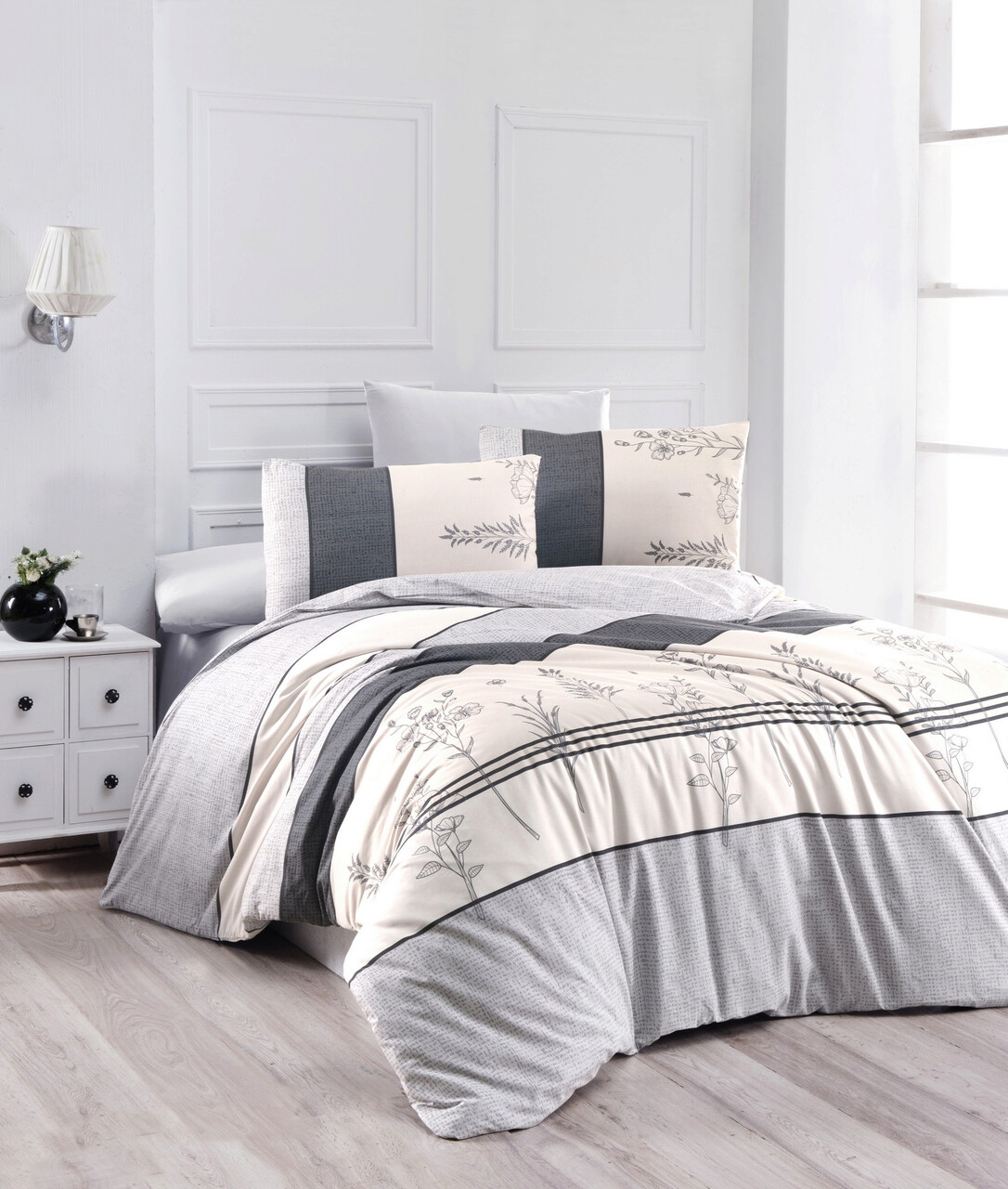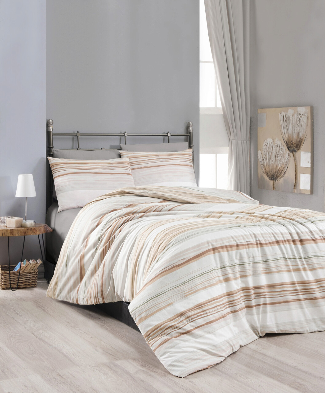 Lenjerie de pat dubla King (FR), Lessentiel Maison, Cream, Crem / Gri / Maro