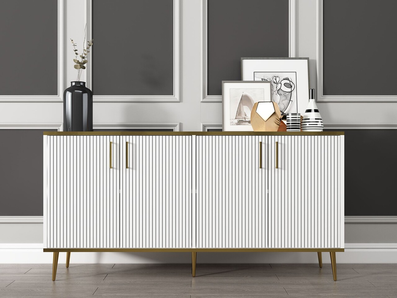 Consola, Hanah Home, Poly, 150x75x36 cm, PAL, Alb