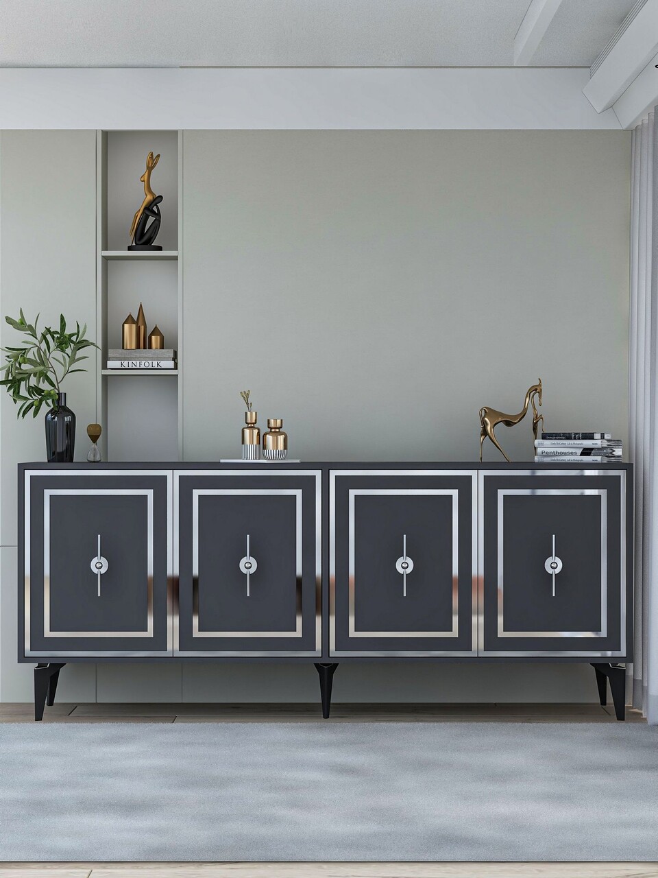 Consola, Hanah Home, Samba, 180x78.6x35 cm, PAL , Antracit / Argintiu