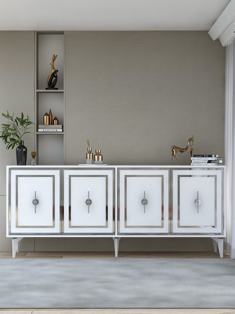 Consola, Hanah Home, Samba, 180x78.6x35 cm, PAL , Alb / Argintiu